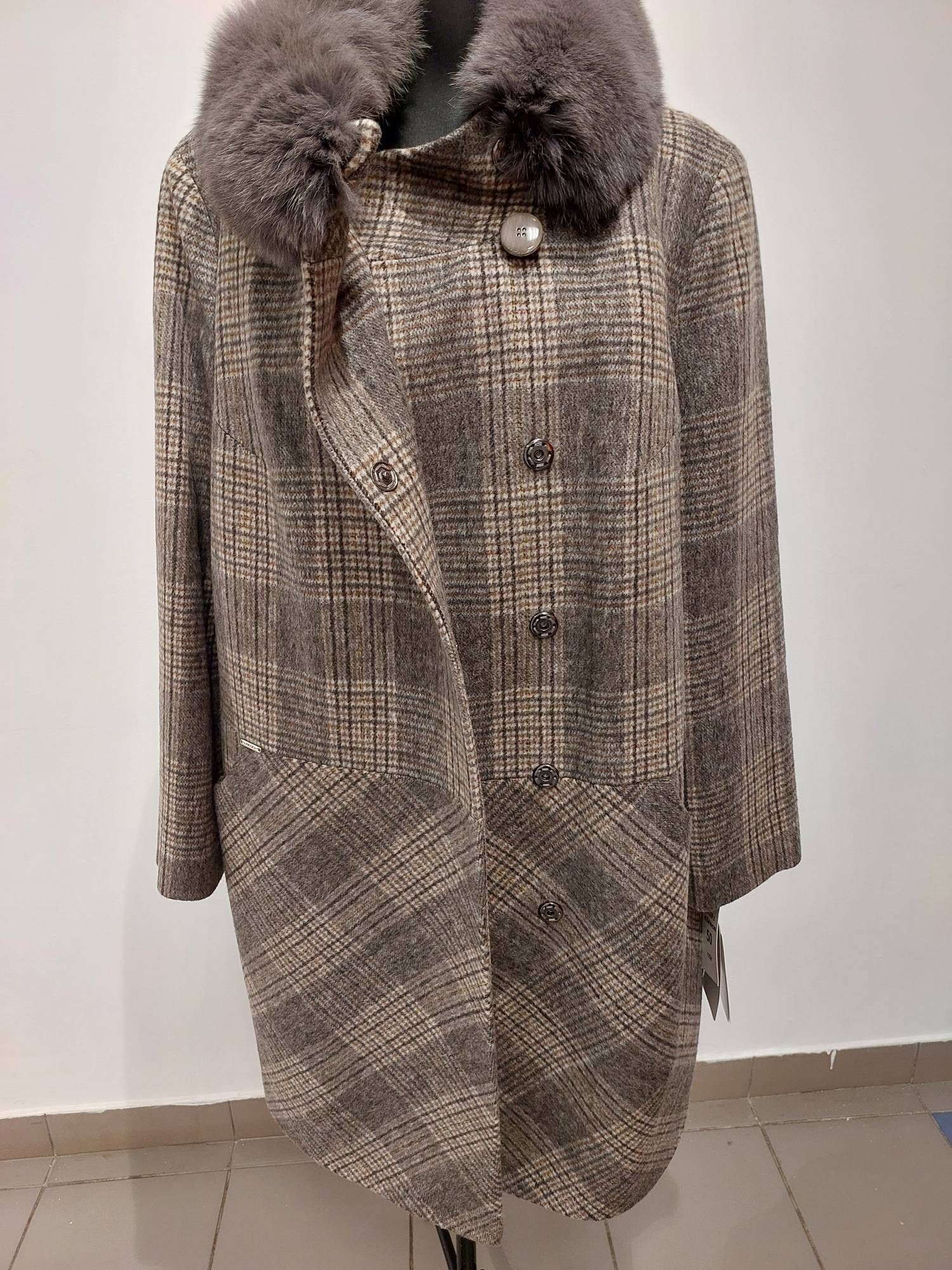 Элегантное зимнее пальто с прямым силуэтом и втачным рукавом, из натуральной шерсти 50% и мягкой подкладки. Клетчатый рисунок добавляет образу стиля, а плотная ткань обеспечивает защиту от холода. Подходит для повседневных прогулок и городских будней. Мех крашенный песец в тон цвета ткани.